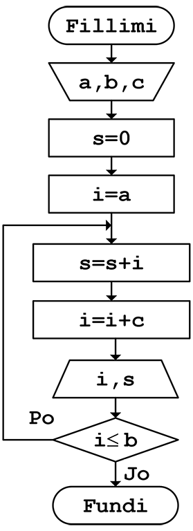 Detyrë: Të shkruhet programi dhe të tregohet dalja për $a=1,\; b=10,\; c=3$.