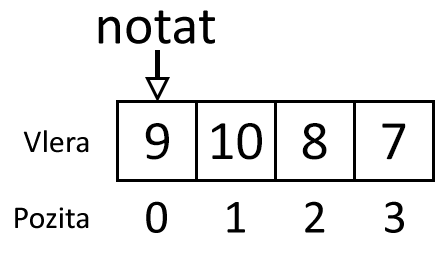 notat është varg i gjatësisë $4$ dhe është inicializuar me vlerat $\lbrace 9, 10, 8, 7 \rbrace$