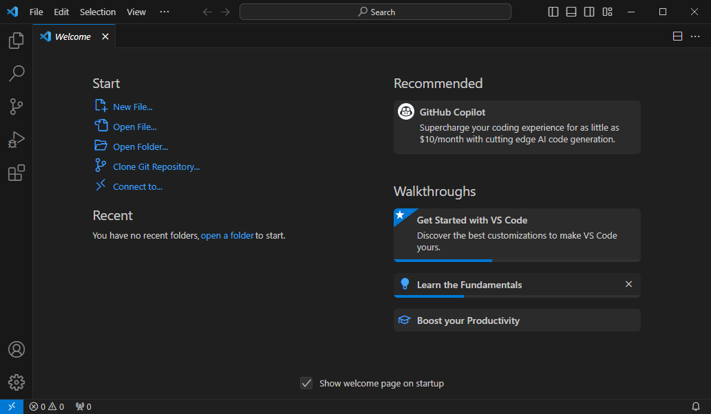 E hapim VS Code, dhe na shfaqet pamja në vijim: