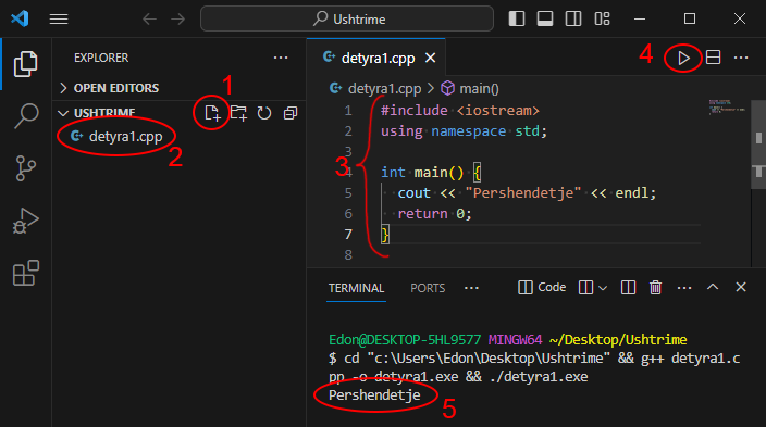 Desktop > Ushtrime.File > Open Folder....Shkruarja e programeve në VS Code