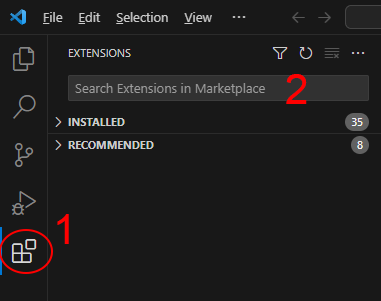 Për të na lehtësuar punën me C++, na nevojiten dy extensions (zgjerime). Extensions instalohen duke shkuar te paneli Extensions (Ctrl+Shift+X), si në vijim: