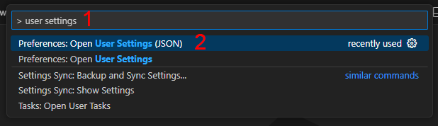 View > Command PaletteCtrl+Shift+PF1Preferences: Open User Settings (JSON), si në pamjen e mëposhtme: